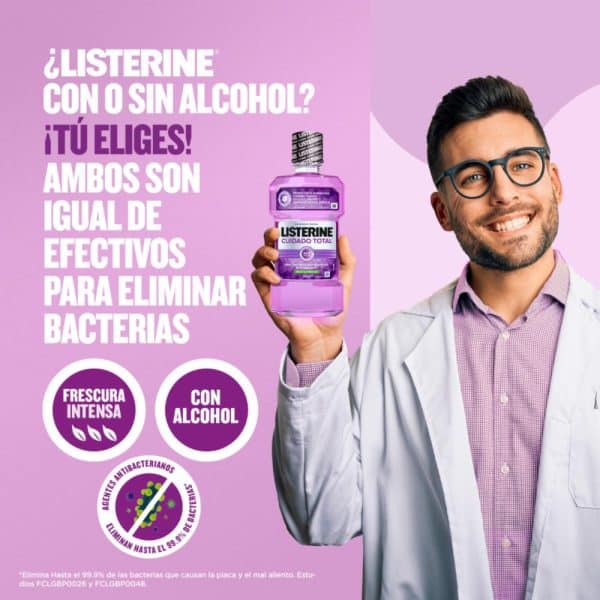 LISTERINE® Cuidado Total es el más avanzado y completo LISTERINE®. ¡Ofrece 6 beneficios en 1! Combate los gérmenes que causan el mal aliento y la placa bacteriana, protegiendo las encías