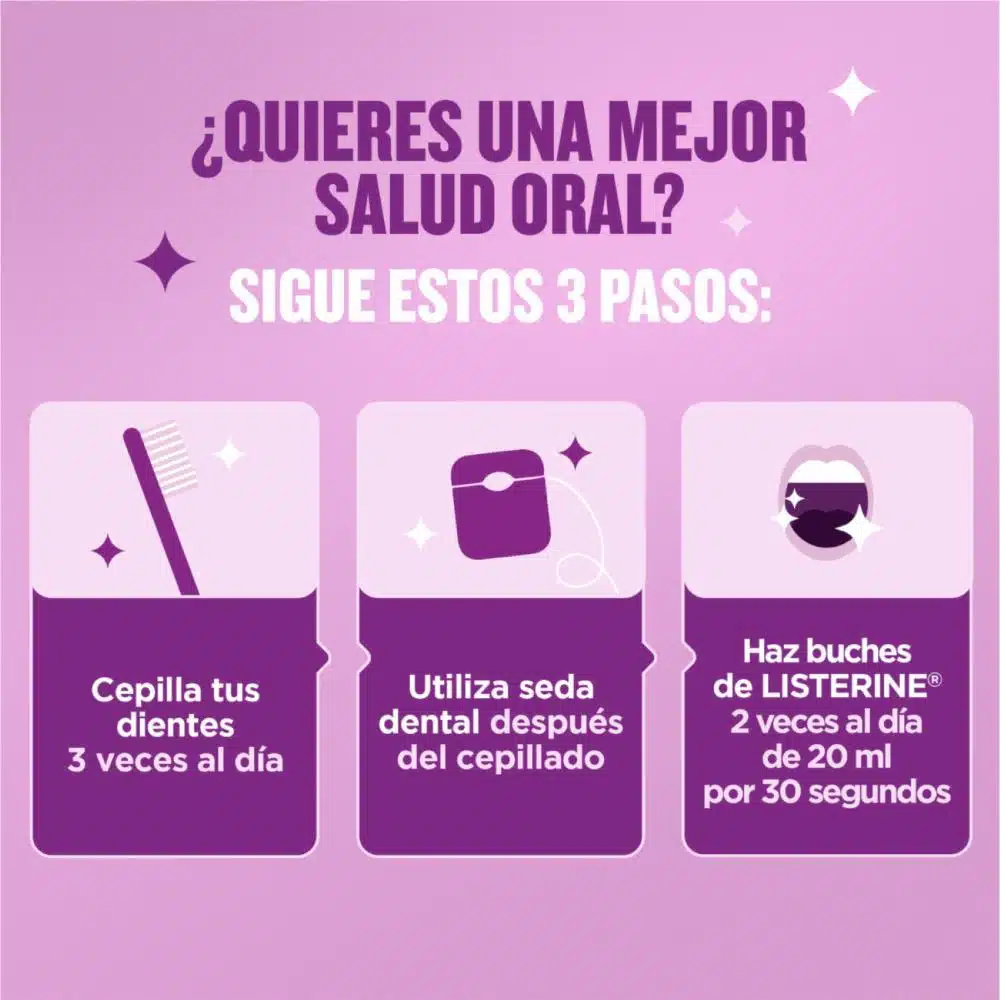 LISTERINE® Cuidado Total es el más avanzado y completo LISTERINE®. ¡Ofrece 6 beneficios en 1! Combate los gérmenes que causan el mal aliento y la placa bacteriana, protegiendo las encías
