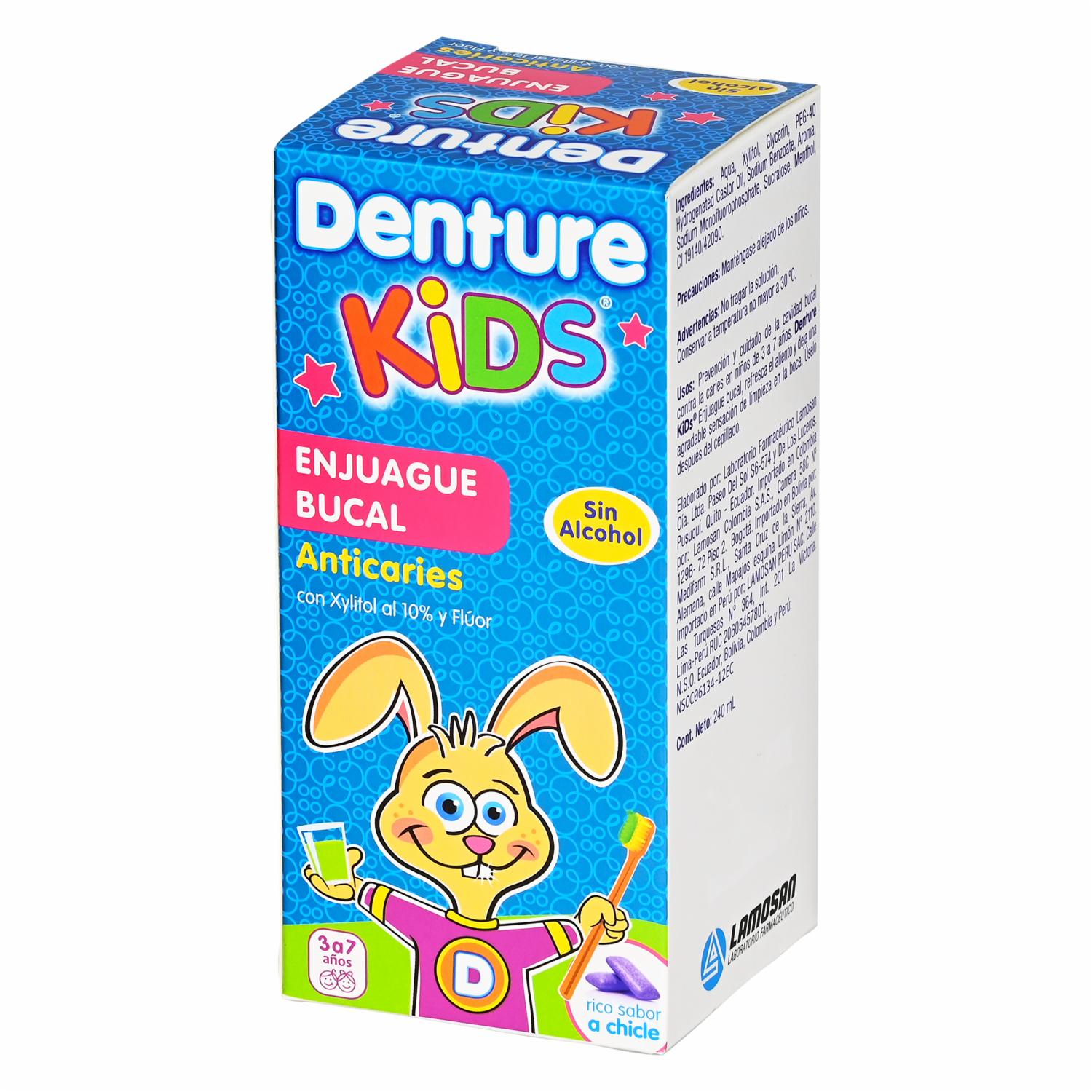Enjuague Bucal Infantil Sabor A Chicle Xylitol Y Fluor DENTURE 240 Ml