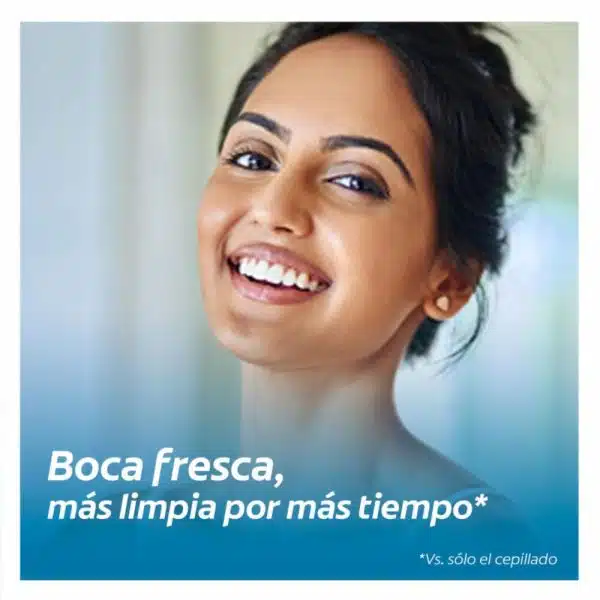 • Al mismo tiempo podrás disfrutar de un rico sabor Menta Original qué le dará a tu aliento un toque de frescura inigualable. Con cada cepillada notarás que tu sonrisa se mantiene más clara y brillante