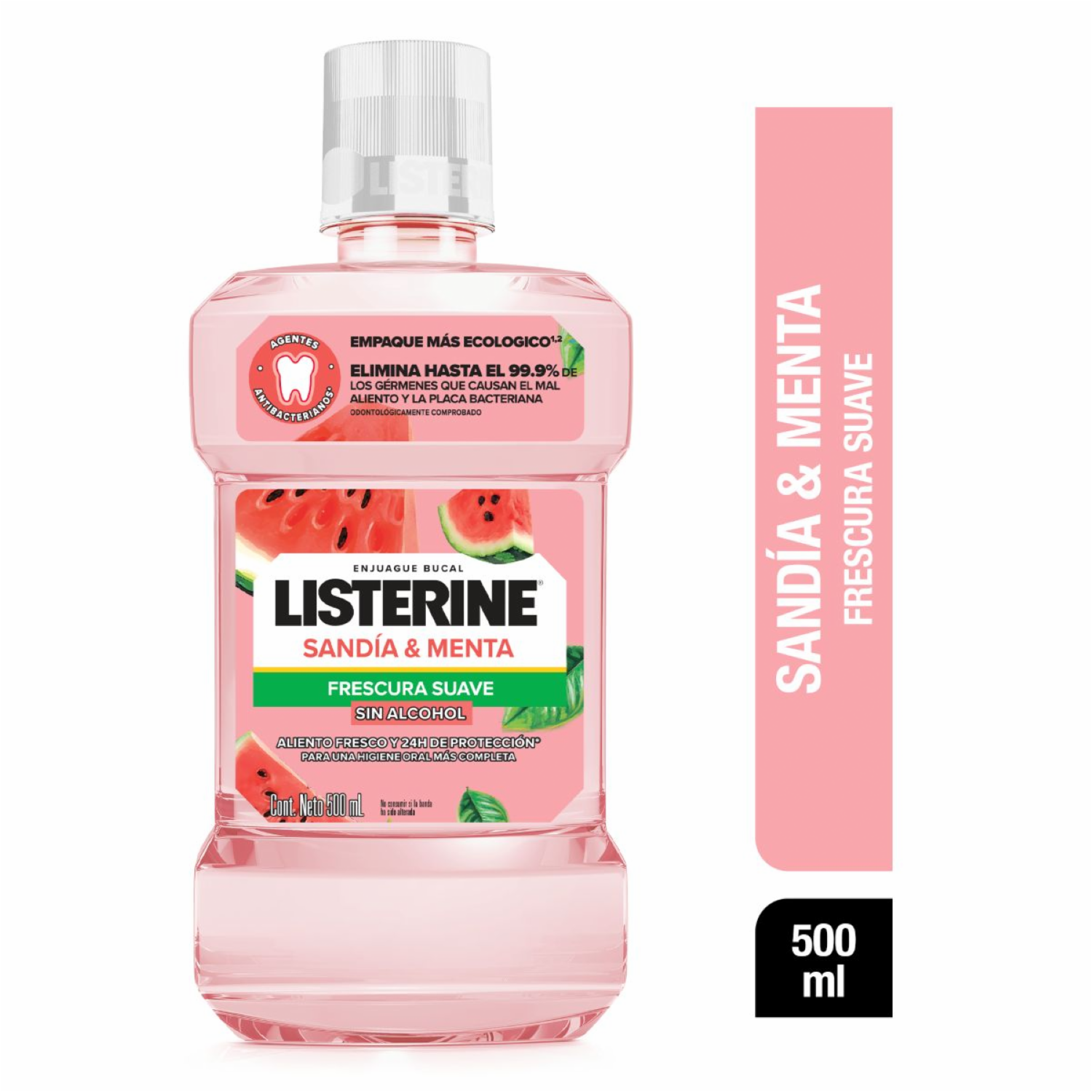 - LISTERINE SANDIA & MENTA elimina hasta el 99.9% de los gérmenes que causan el mal aliento y la placa bacteriana. Brindando 24 horas de protección, para una higiene bucal completa. Protección contra los gérmenes que causan la placa bacteriana y mal aliento, con un uso cada 12h
