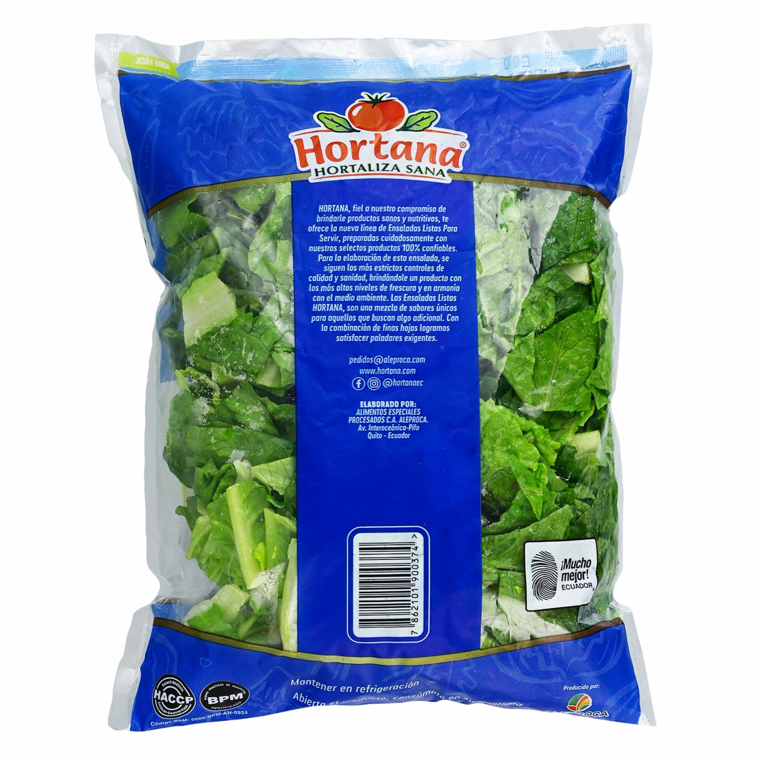 - Ensalada Cesar Hortana, lista para consumir alto contenido natural de agua
