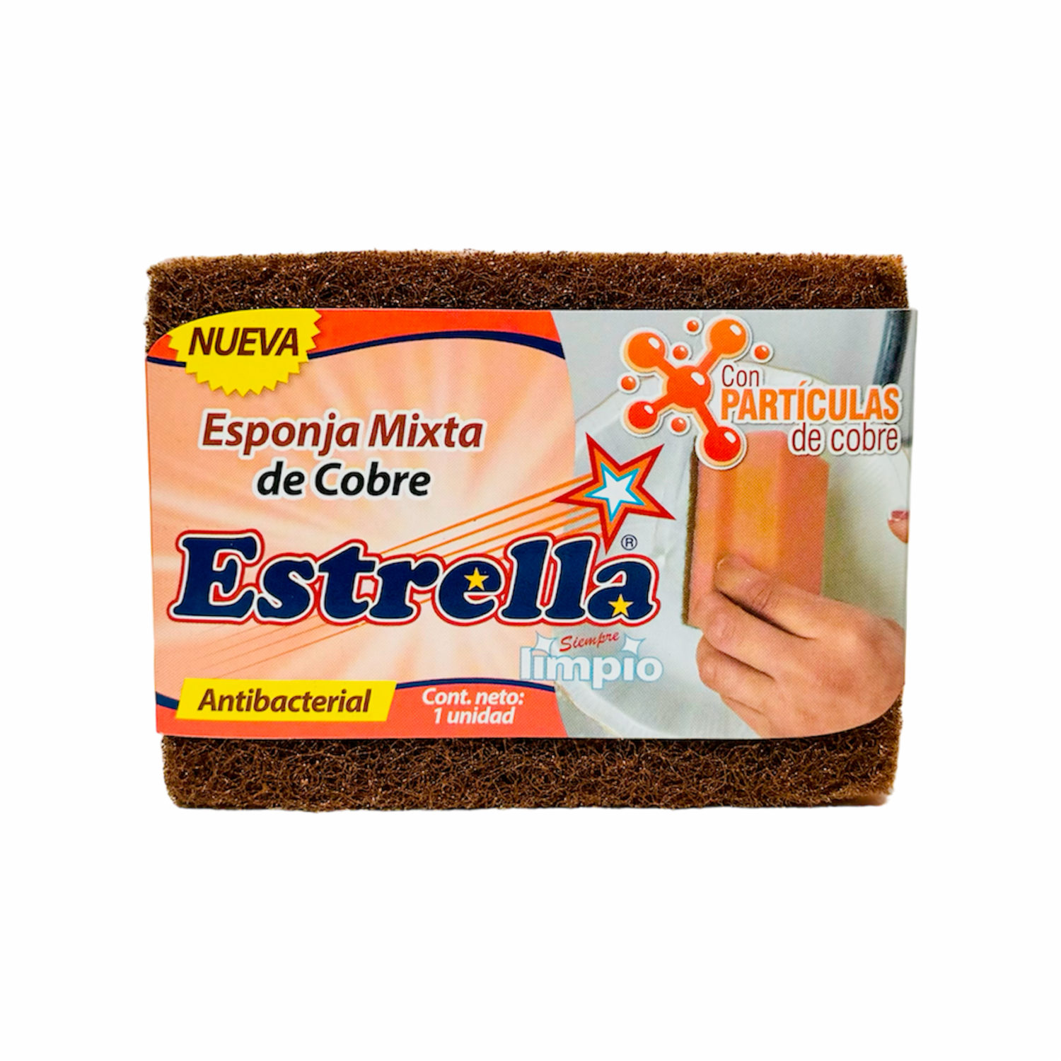 Esponja Multiusos Mixta Con Partículas De Cobre Antibacterial ESTRELLA Unidad