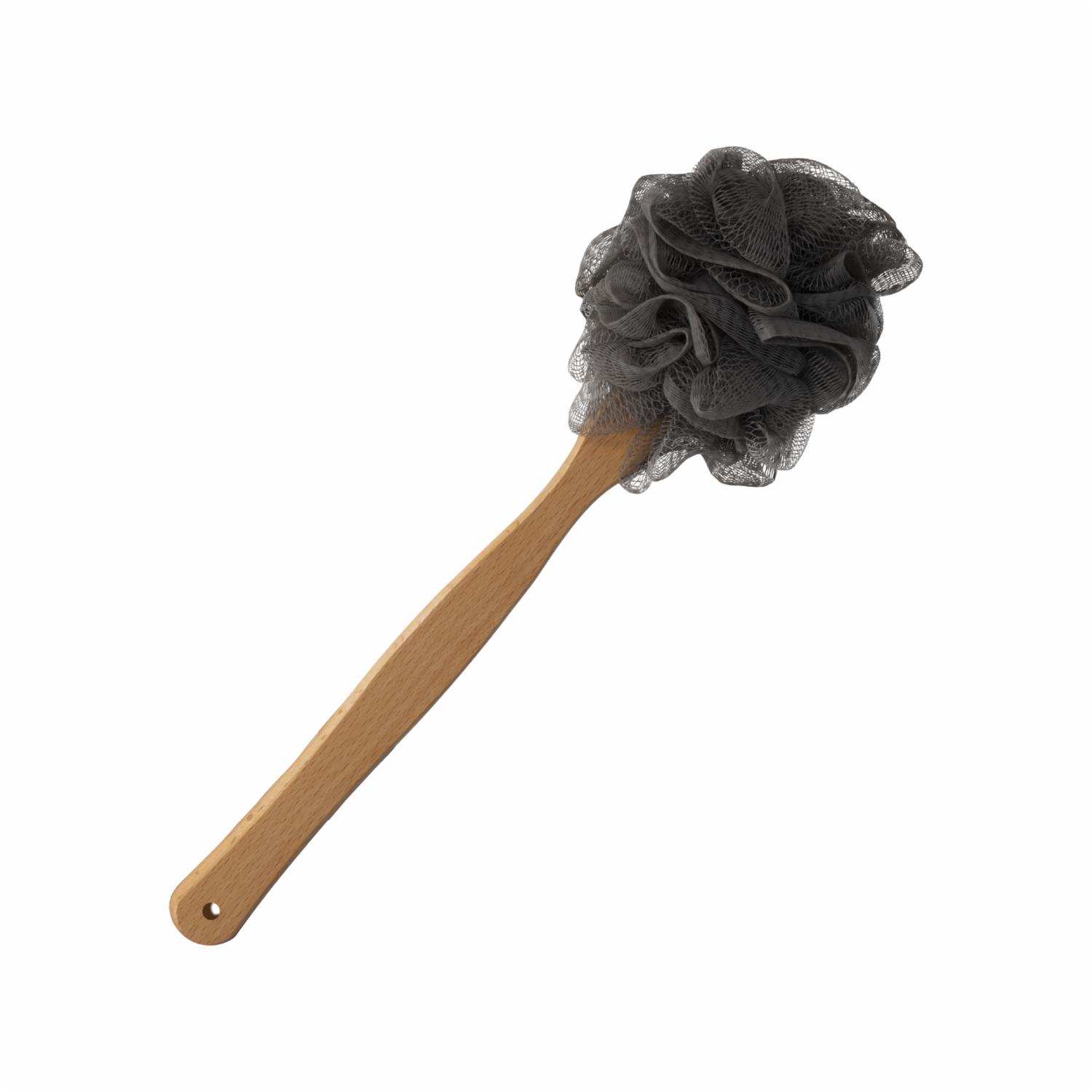 - Se mantiene firme, el mango largo de madera llega a esos puntos difíciles de alcanzar en la espalda y los pies, las piernas para frotar y suavizar la piel