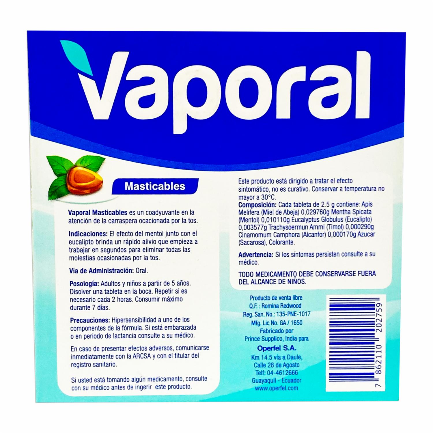 Expectorante Masticable En Tabletas Sabor Mentol Eucaliptus VAPORAL 50 G