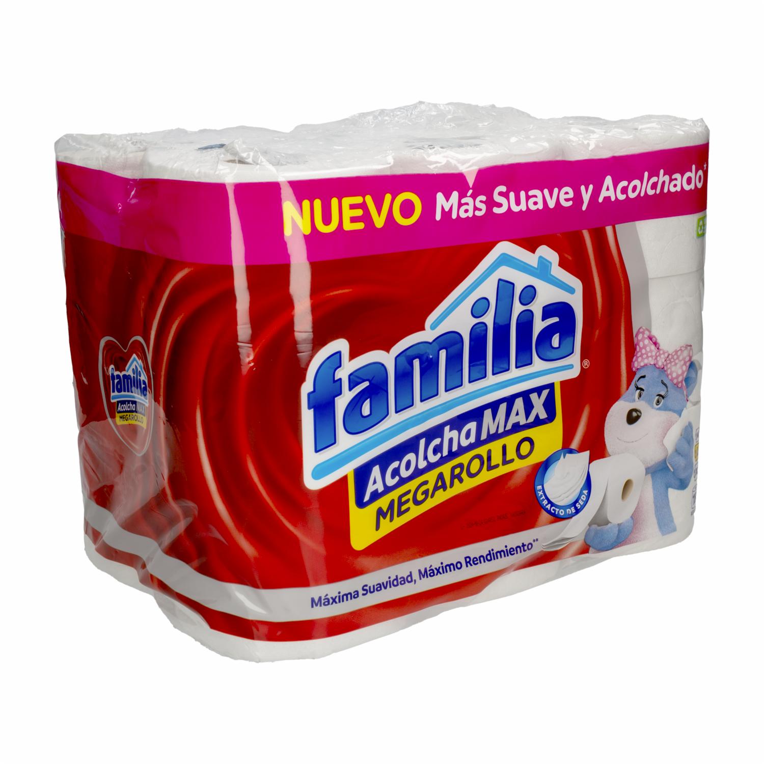 El nuevo Familia® AcolchaMAX Megarollo, Nuevo más suave y acolchado, único papel higiénico triple hoja con extracto de seda, que entrega máxima suavidad y máximo rendimiento. *comparado con la suavidad y el rendimiento de papel higiénico Familia AcolchaMax anterior y **comparado con el con el rendimiento de Papel Higiénico Familia AromaMAX