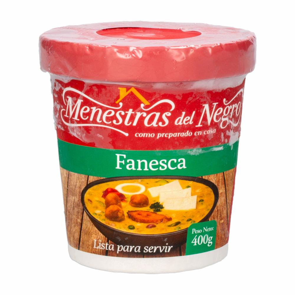 • La "Fanesca Condelada Menestras del Negro 400 g" es una presentación de fanesca ofrecida por la marca Menestras del Negro, que se encuentra en envases de 400 gramos