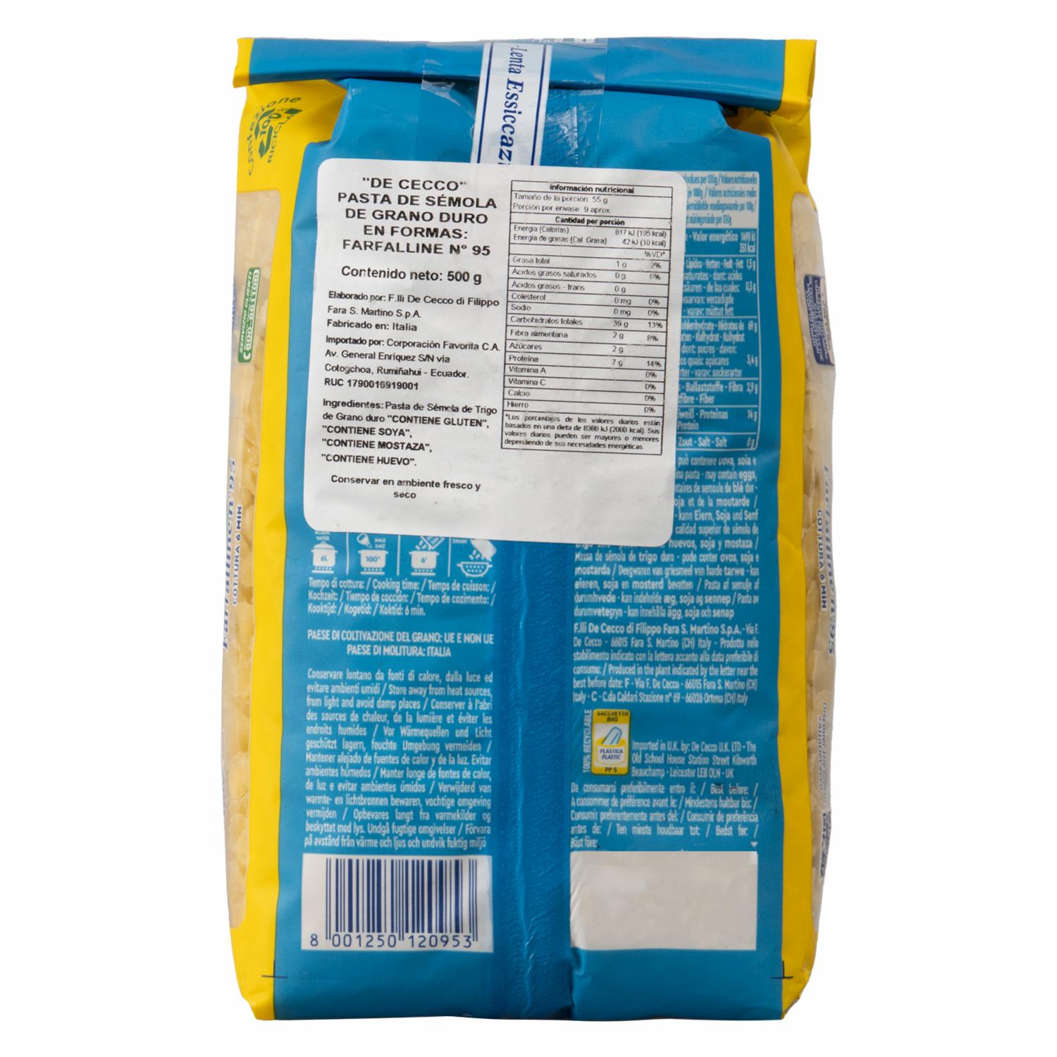 Farfaliline Pasta DE CECCO Funda – DE CECCO. Disponible en nuestros locales. Precio y stock pueden variar según la tienda.