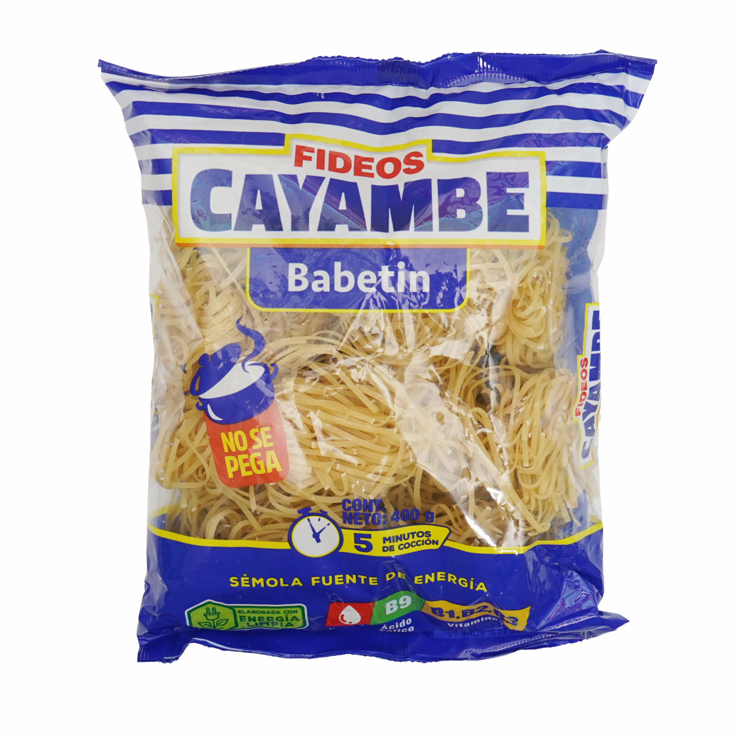 Fideo Babetin CAYAMBE 400 g – CAYAMBE. Disponible en nuestros locales. Precio y stock pueden variar según la tienda.