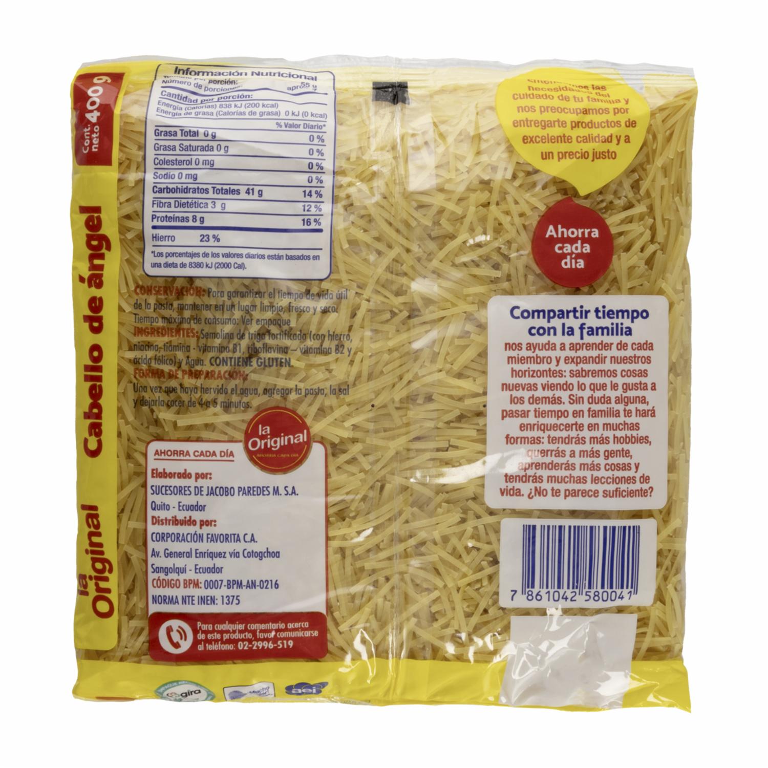 Fideo Cabello De Ángel LA ORIGINAL 400 G – LA ORIGINAL. Disponible en nuestros locales. Precio y stock pueden variar según la tienda.