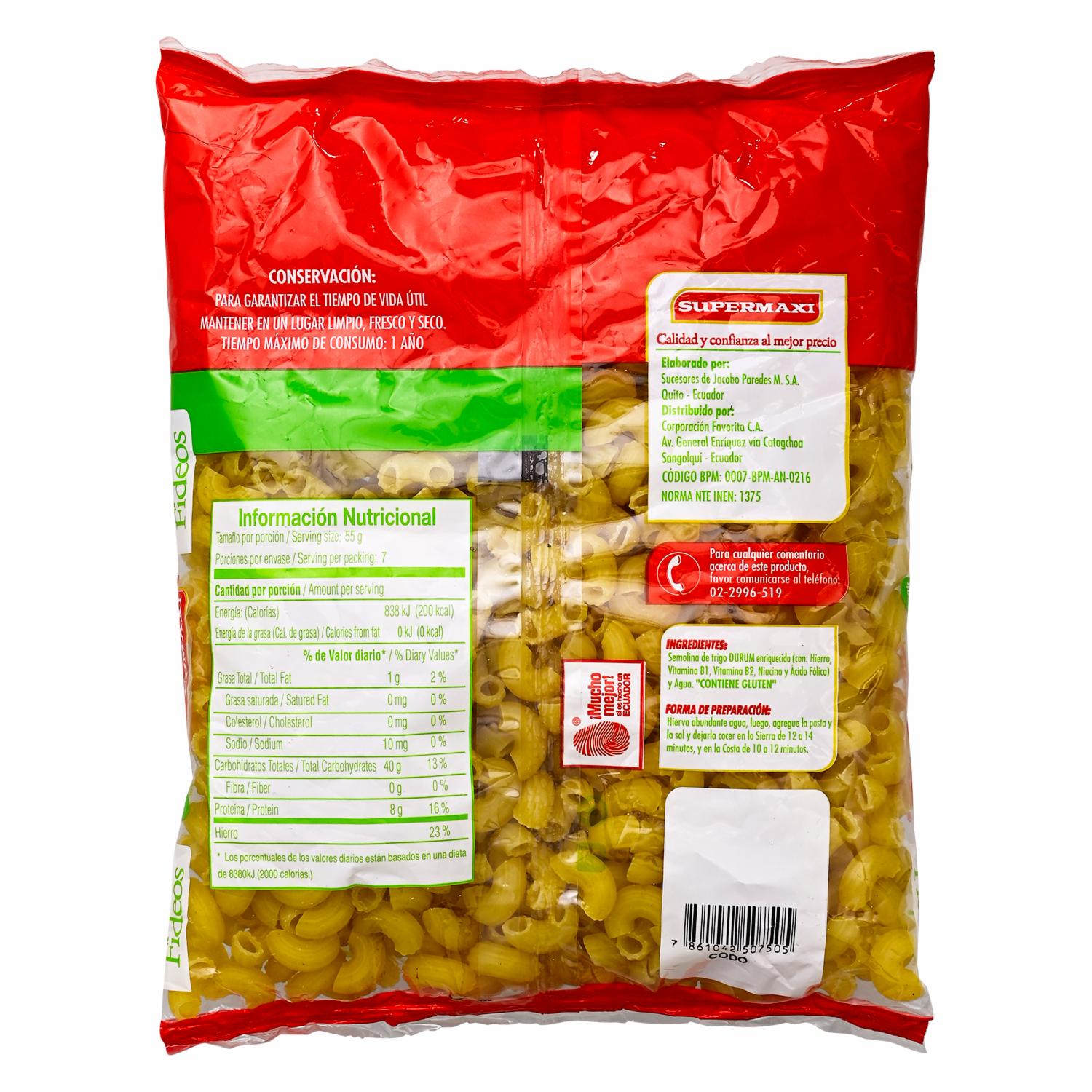 consultando preciosFideo Codo Liso SUPERMAXI Funda – SUPERMAXI. Disponible en nuestros locales. Precio y stock pueden variar según la tienda.