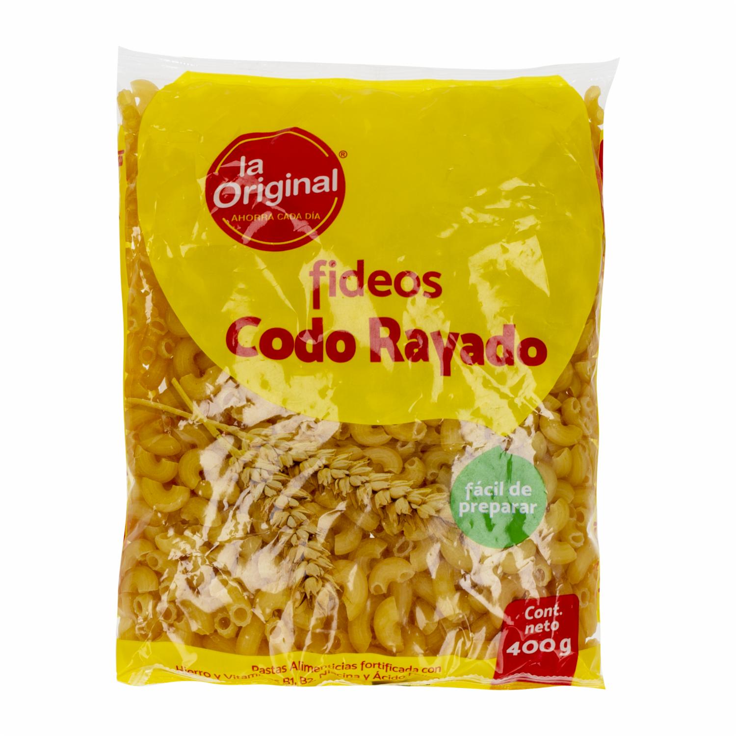 consultando preciosFideo Codo Rayado LA ORIGINAL 400 G – LA ORIGINAL. Disponible en nuestros locales. Precio y stock pueden variar según la tienda.
