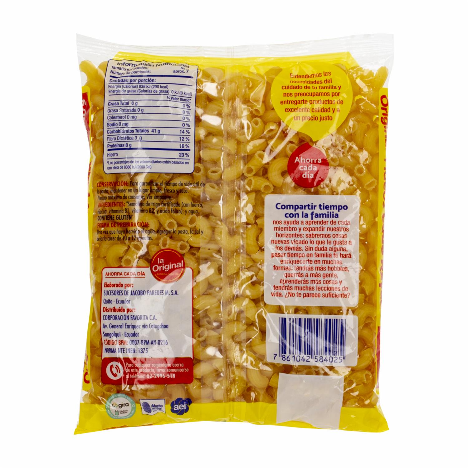 Fideo Codo Rayado LA ORIGINAL 400 G