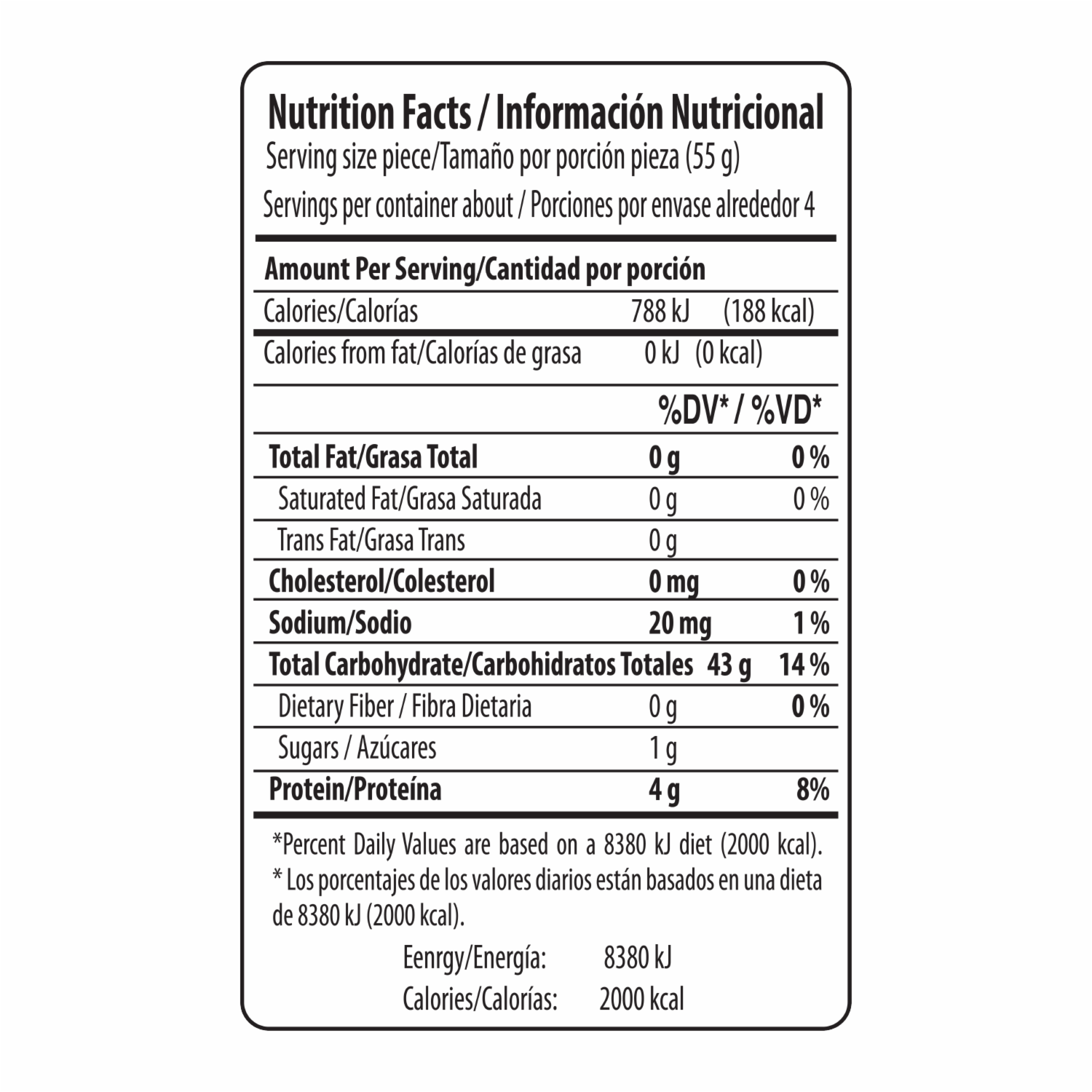 No contiene grasa ni colesterol