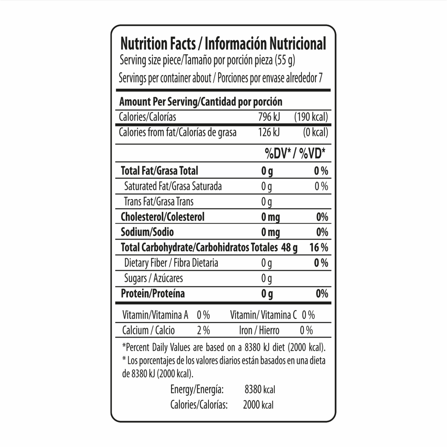 Contiene calcio, es libre de gluten, sin colorante artificial ni preservantes.