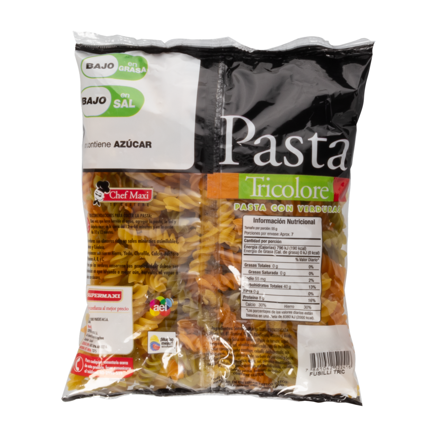 consultando preciosFideo Fusilli Tricolore SUPERMAXI 400 g – SUPERMAXI. Disponible en nuestros locales. Precio y stock pueden variar según la tienda.