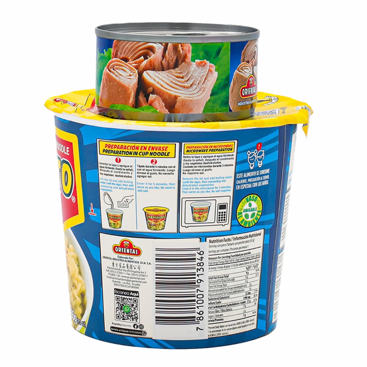 Fideo Instantáneo Rapidito Pollo Vaso con Atún ORIENTAL 145 G