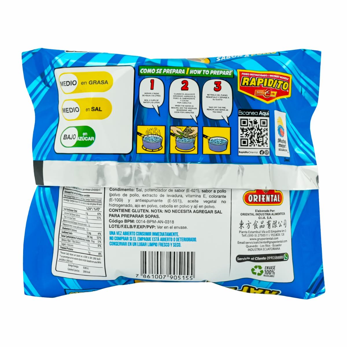 Fideo Instantáneo Rapidito Sabor A Pollo ORIENTAL 100 G
