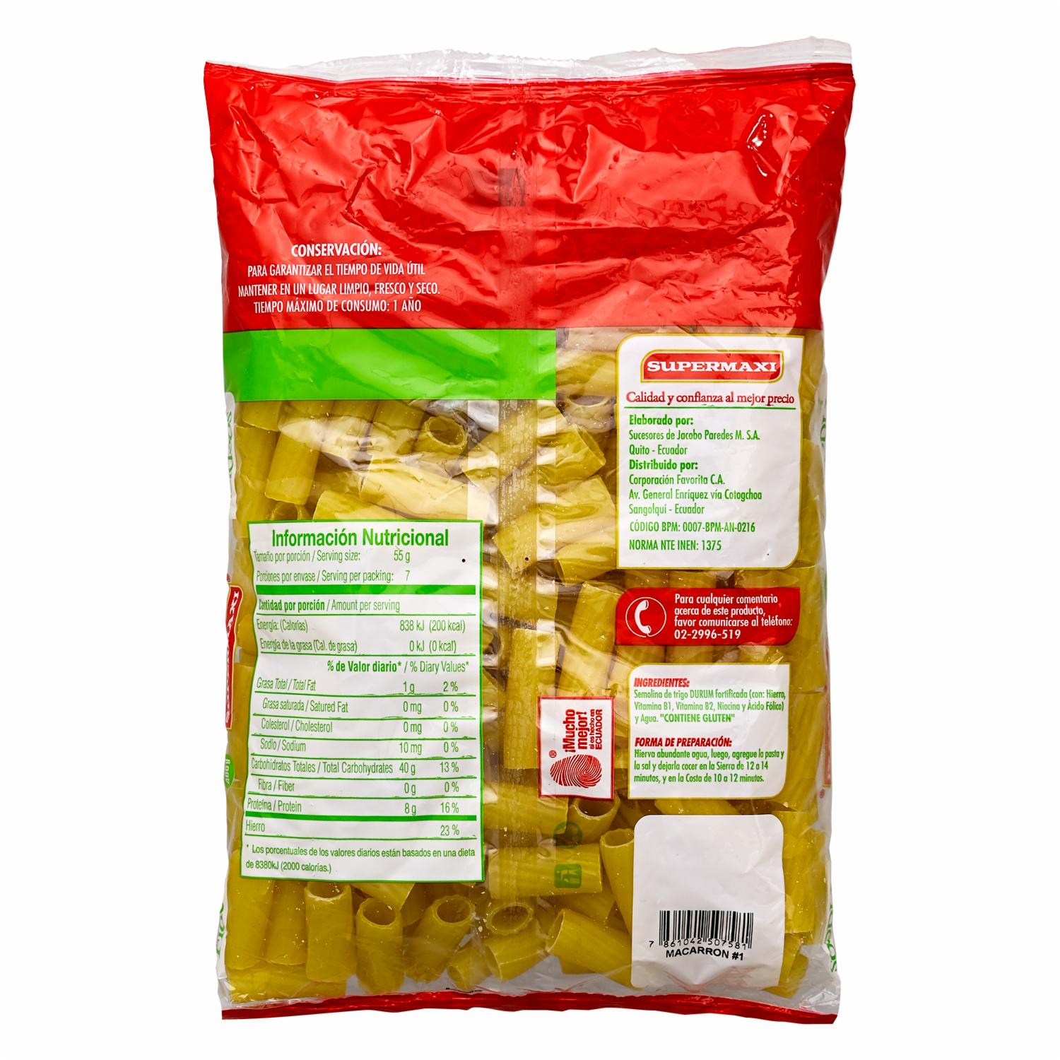 Fideo Macarroni SUPERMAXI 400 G – SUPERMAXI. Disponible en nuestros locales. Precio y stock pueden variar según la tienda.