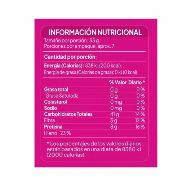 Pasta elaborada con semolina de trigo fortificada con hierro y vitaminas