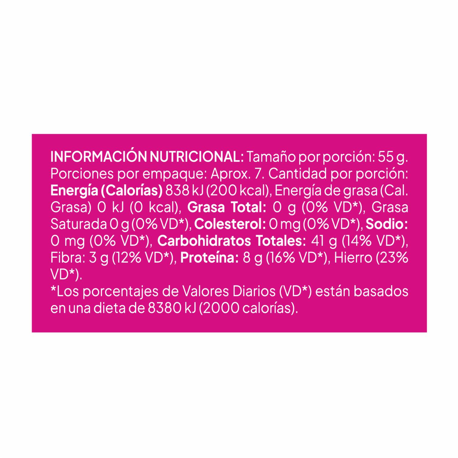 Pasta elaborada con semolina de trigo fortificada con hierro y vitaminas