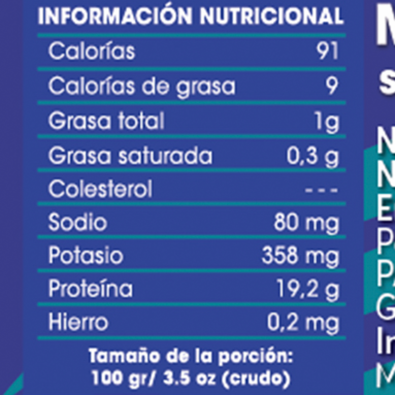 - Es un pescado magro que contiene 1,2 gramos de grasa por cada 100 gramos de porción comestible