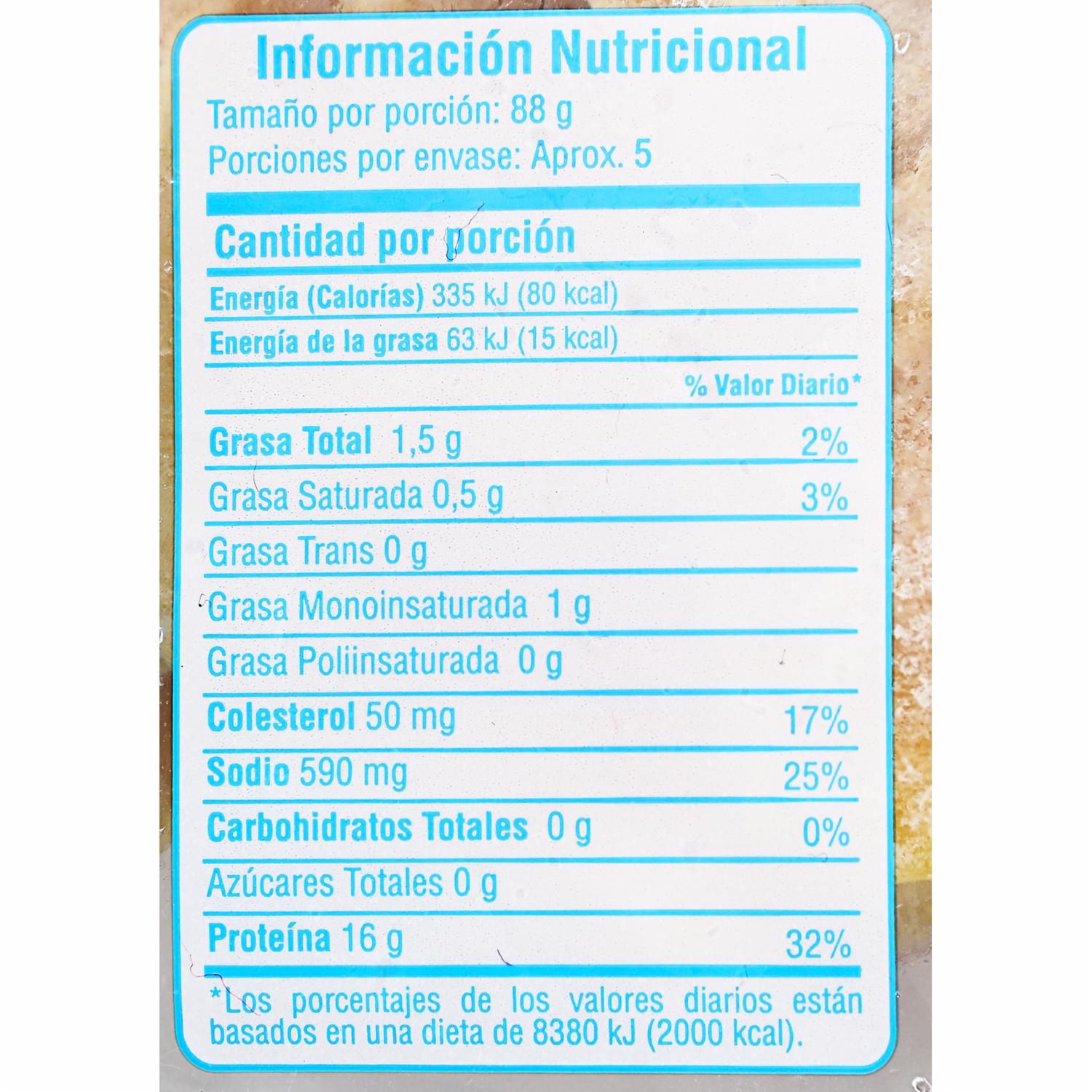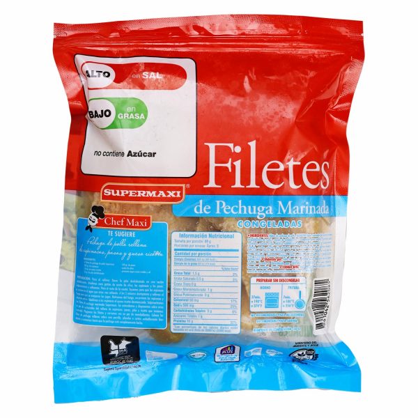 Filetes de pechuga marinada congeladas, sin conservantes 0% grasas trans. Contiene de 4 a 6 unidades