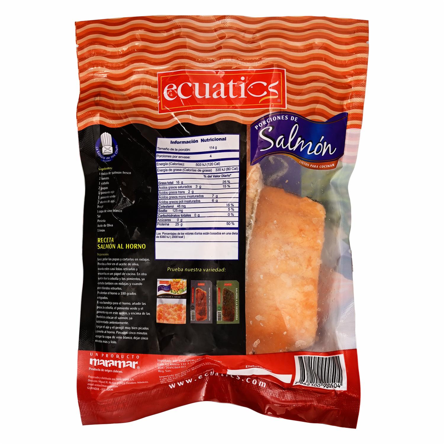 Filete De Salmón ECUATICS 454 G – ECUATICS. Disponible en nuestros locales. Precio y stock pueden variar según la tienda.