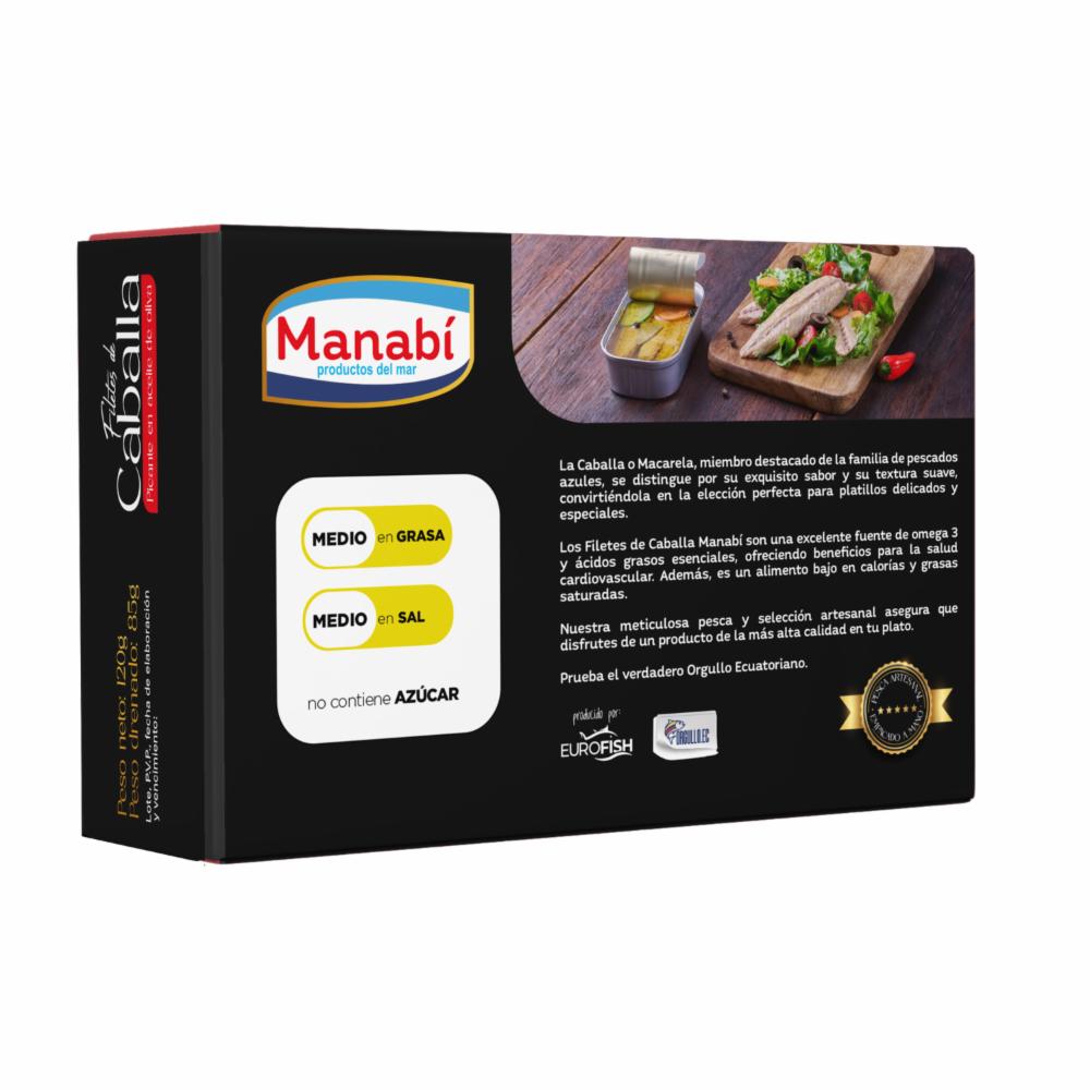 Filetes De Caballa En Aceite De Oliva Picante MANABÍ 120 g – MANABI. Disponible en nuestros locales. Precio y stock pueden variar según la tienda.