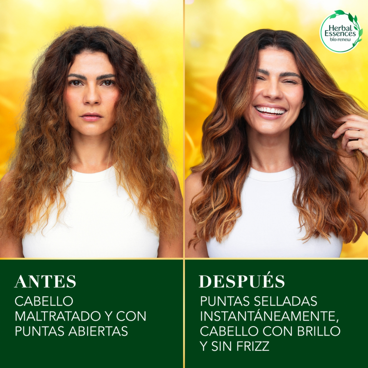 • 'Sin adición de NaCl La colección Herbal Essences Bio:Renew Nutre e Hidrata Pequi & Aguacate, será tu mejor aliada, proporcionando nutrición profunda e hidratación al cabello seco y maltratado. El Nutre-óleo finalizador libre de sal' sulfatos, colorantes y parabenos, nutre y reparar las puntas del cabello, controlando el frizz