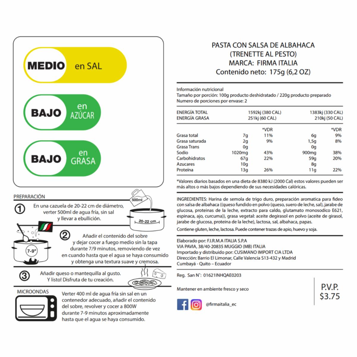 consultando preciosPasta Trenette Al Pesto FIRMA ITALIA 175 G – FIRMA ITALIA. Disponible en nuestros locales. Precio y stock pueden variar según la tienda.