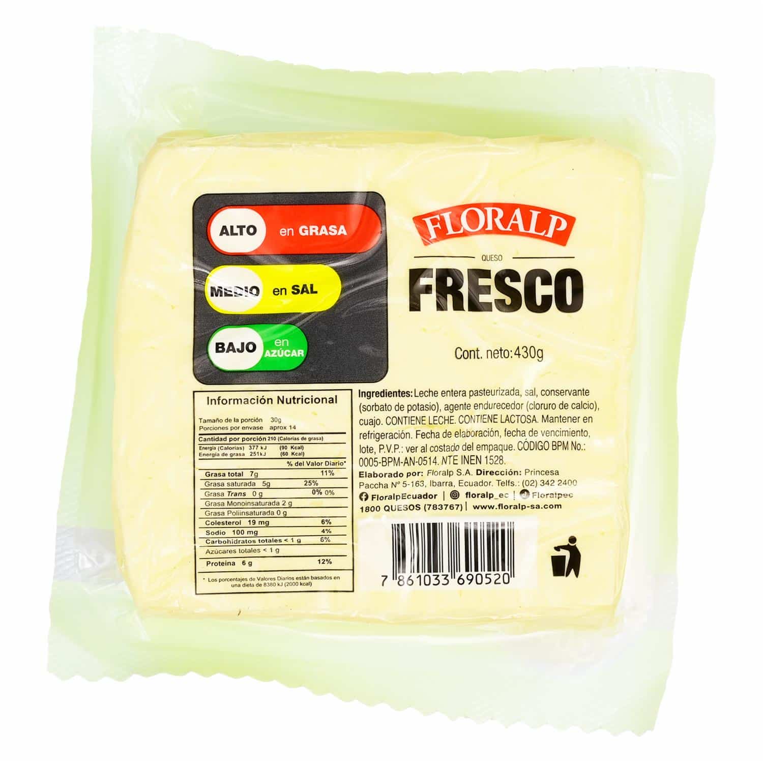 Queso Fresco FLORALP 430 G – FLORALP. Disponible en nuestros locales. Precio y stock pueden variar según la tienda.