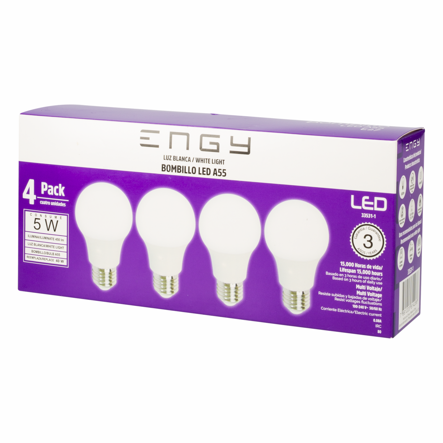 Foco Led A55 E27 5W 100-240V 6000K ENGY Pack 4 Piezas