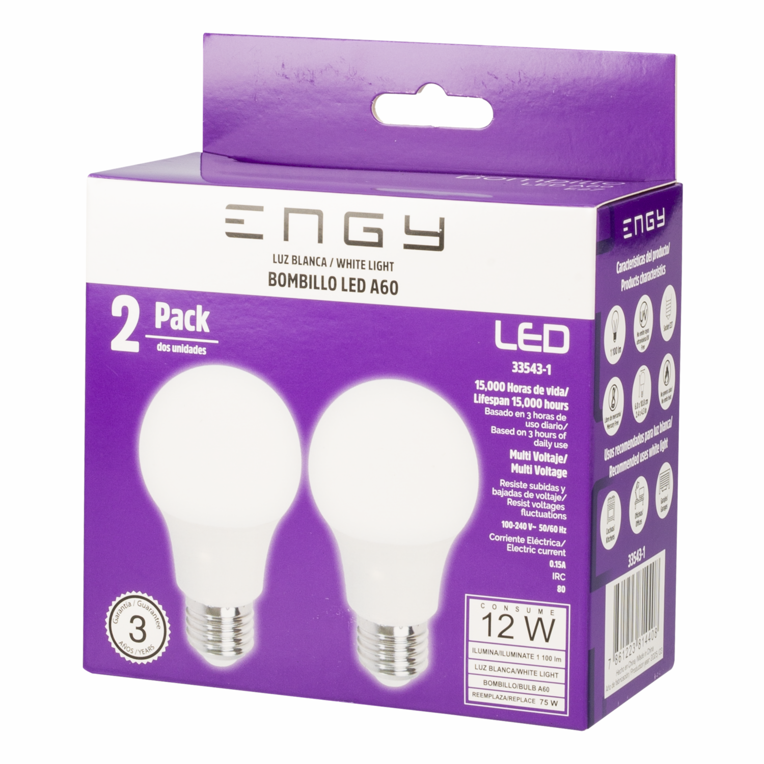 Foco Led A60 E27 12W 6000K ENGY Pack 2 Piezas