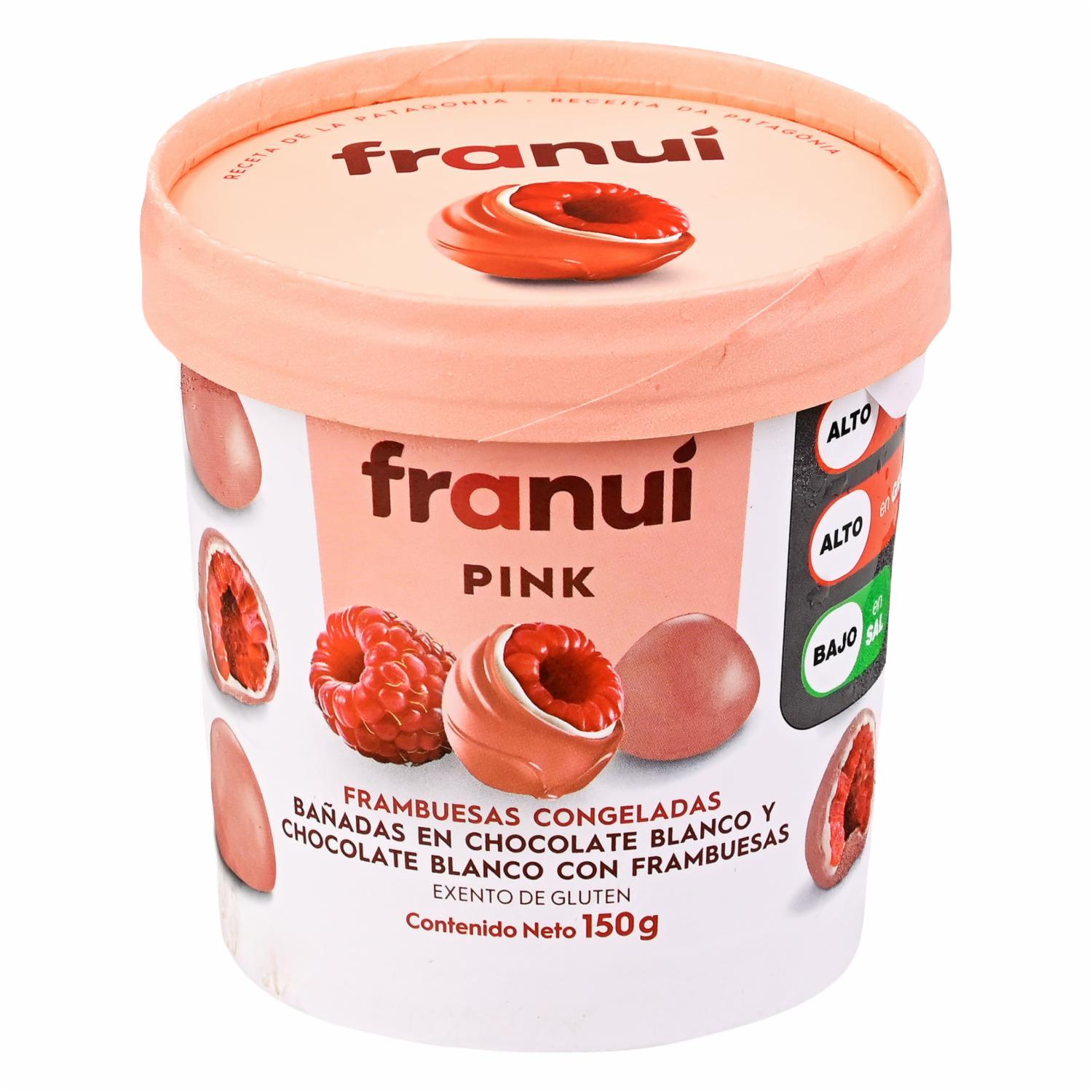 Frambuesas Congeladas Bañadas En Chocolate Blanco Y Chocolate Negro Pink FRANUÍ 150 G