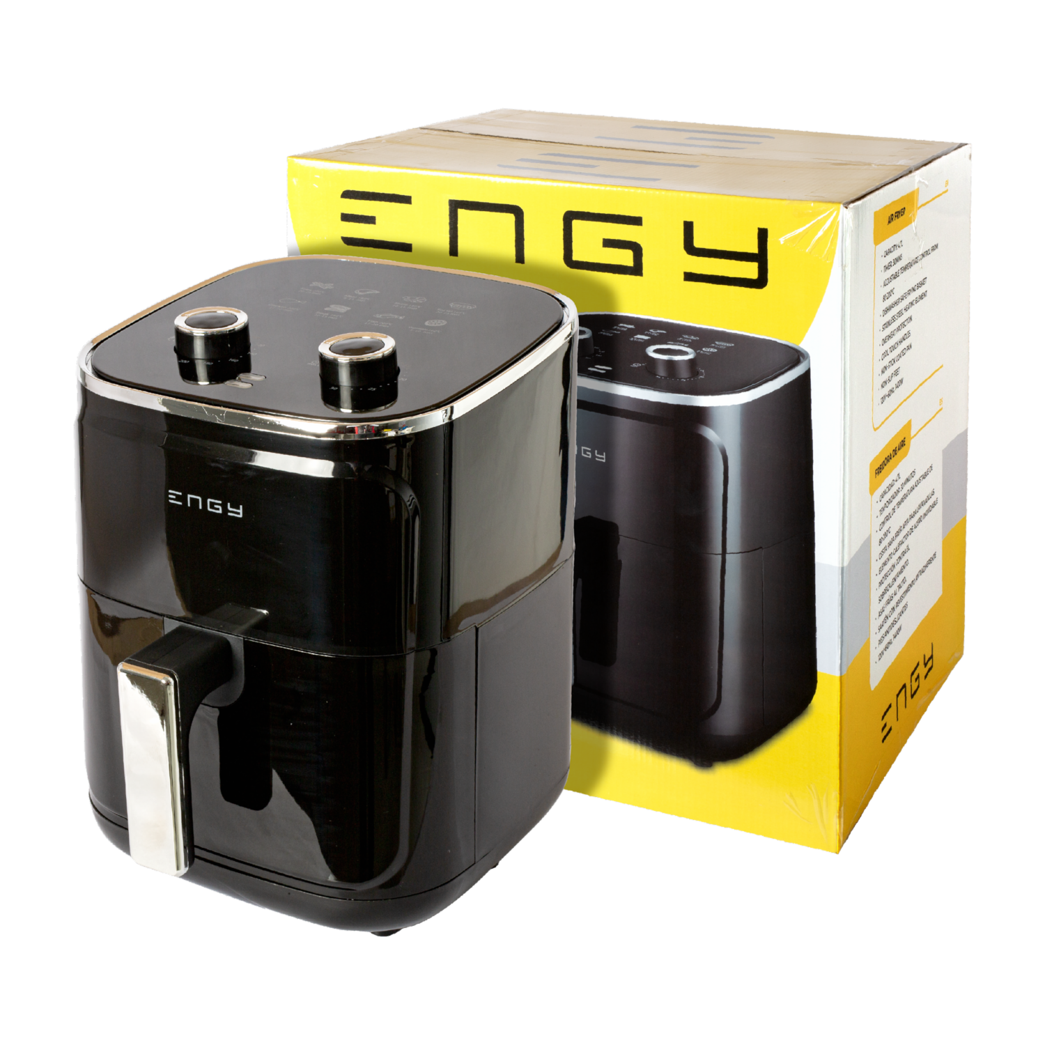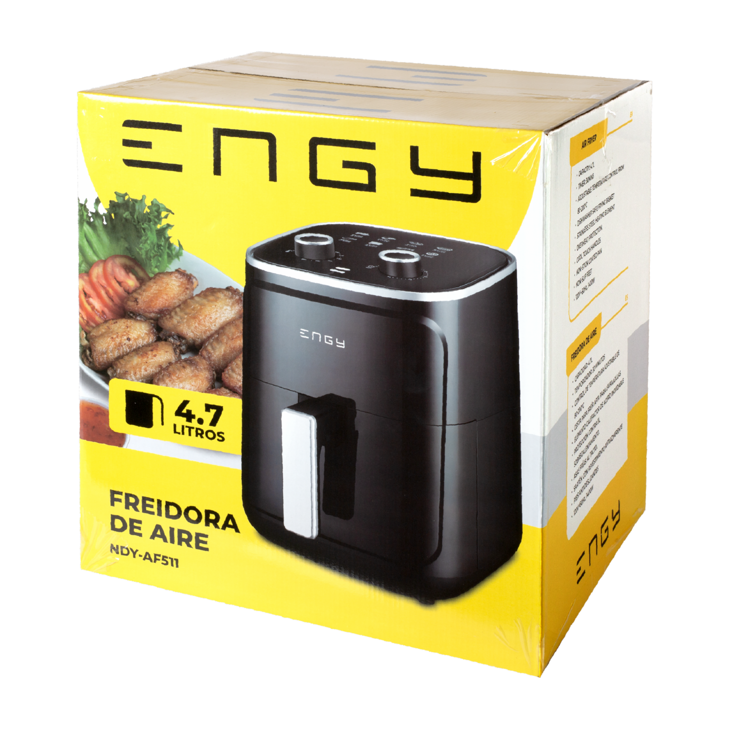 - Experimenta una forma más saludable de cocinar con la Freidora de Aire ENGY NDY-AF511. Esta freidora revoluciona tu cocina al ofrecer una opción baja en grasas para freír tus alimentos favoritos