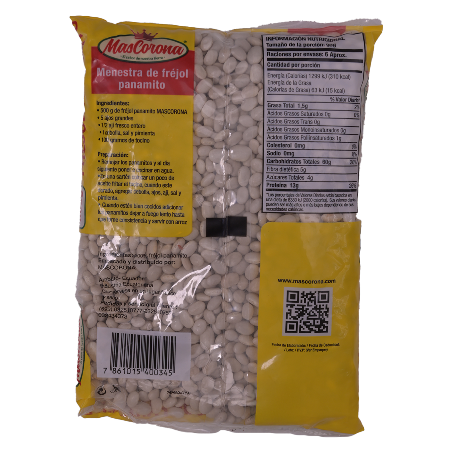 Fréjol Panamito Sin Gluten MAS CORONA 500 G