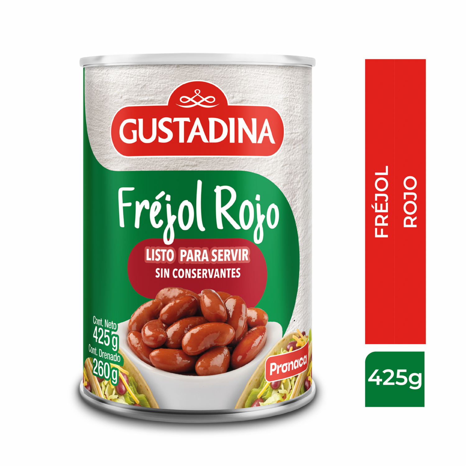 - Explora la versatilidad y el sabor del Frejol Rojo Enlatado de GUSTADINA en su presentación de 425 g. Este producto ofrece la conveniencia de los frijoles enlatados, listos para usar en una variedad de recetas, desde guisos hasta ensaladas y platillos tradicionales