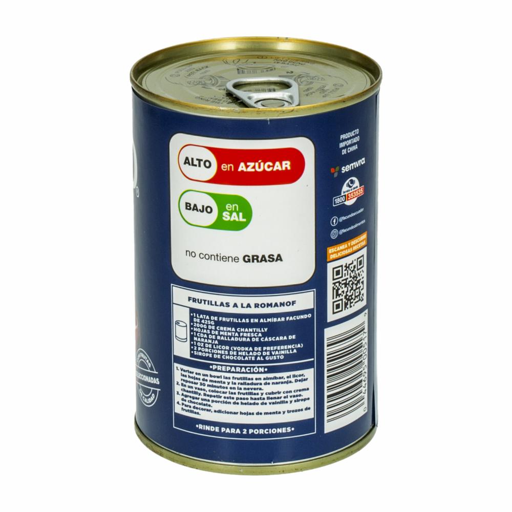 - Las Frutillas en Almibar FACUNDO son perfectas para aquellos que buscan un toque de frescura y dulzura en sus preparaciones. Su suave almibar también puede utilizarse para dar un toque especial a tus recetas o bebidas
