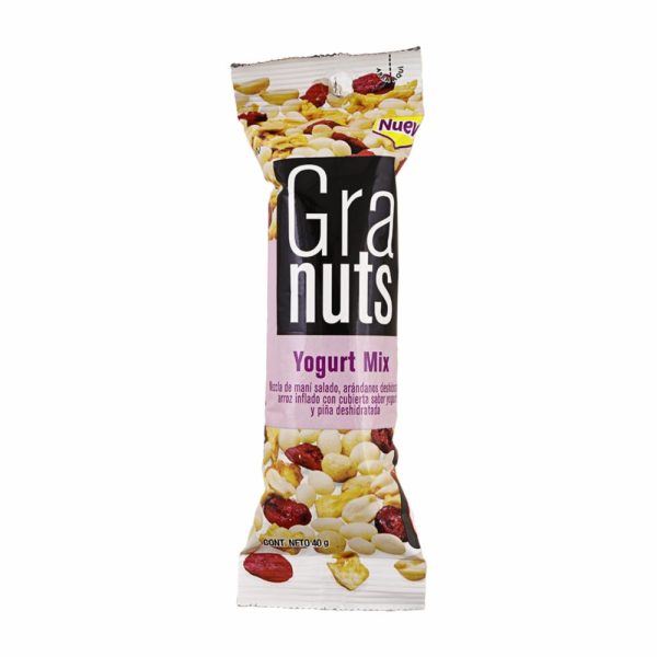 Mezcla de maní, arándanos, yogurt, almendras y piña deshidratada