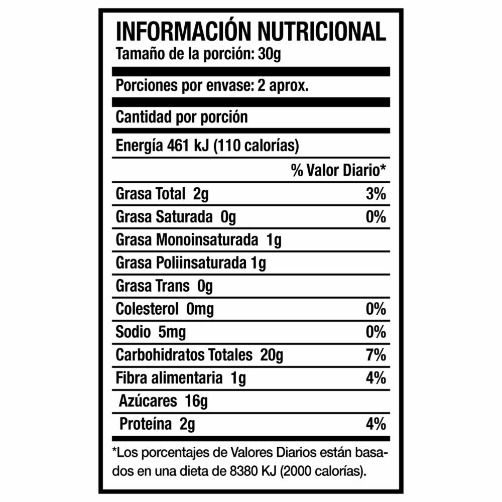Contiene nueces, arándanos rojos, almendras, pasas morenas, y pasas rubias libre de gluten