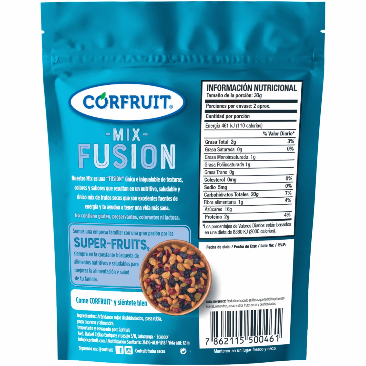 Frutos Secos Mix Fusión CORFRUIT 50 G – CORFRUIT. Disponible en nuestros locales. Precio y stock pueden variar según la tienda.