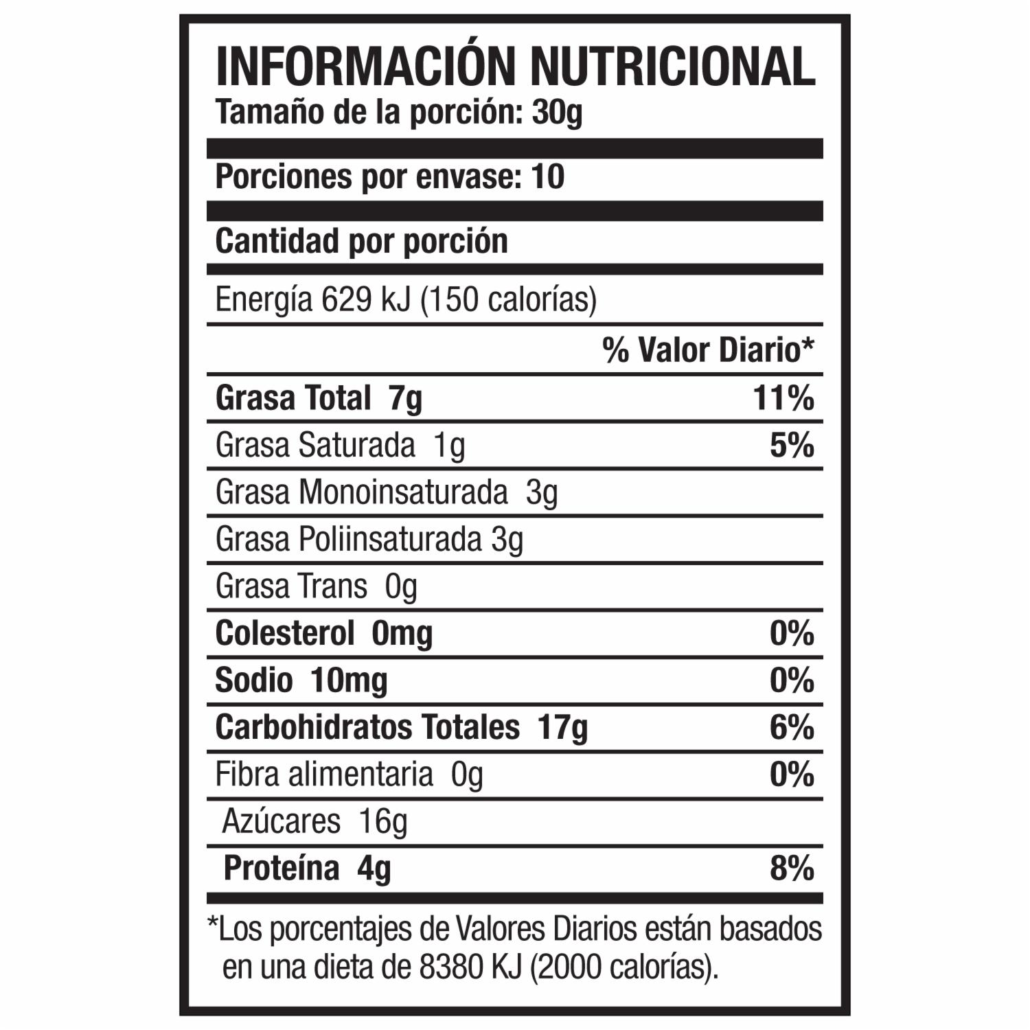 - Contiene nueces, almendras y pasas rubias, libre de gluten