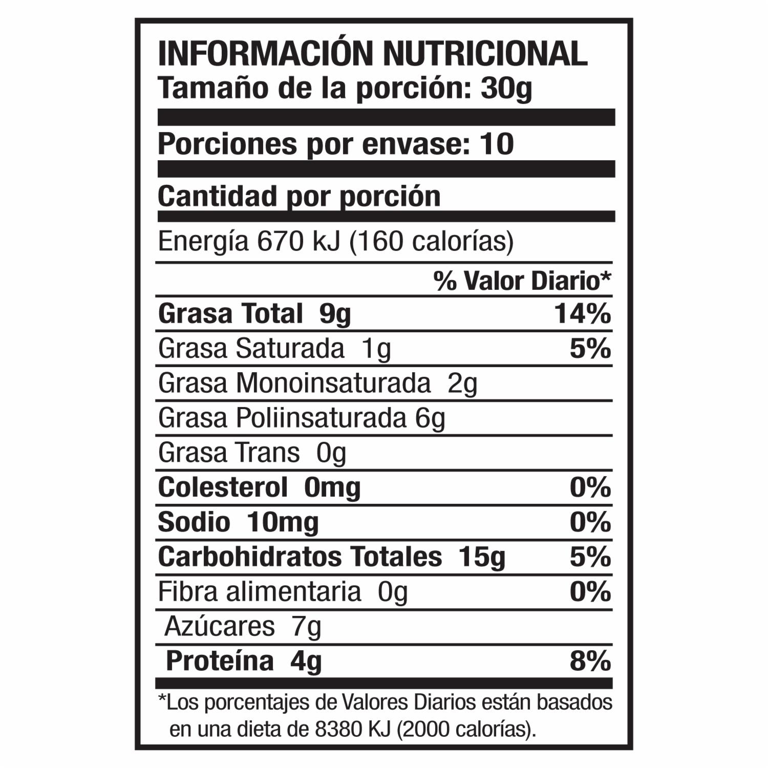 - Contiene nueces, almendras y pasas morenas, libre de glueten