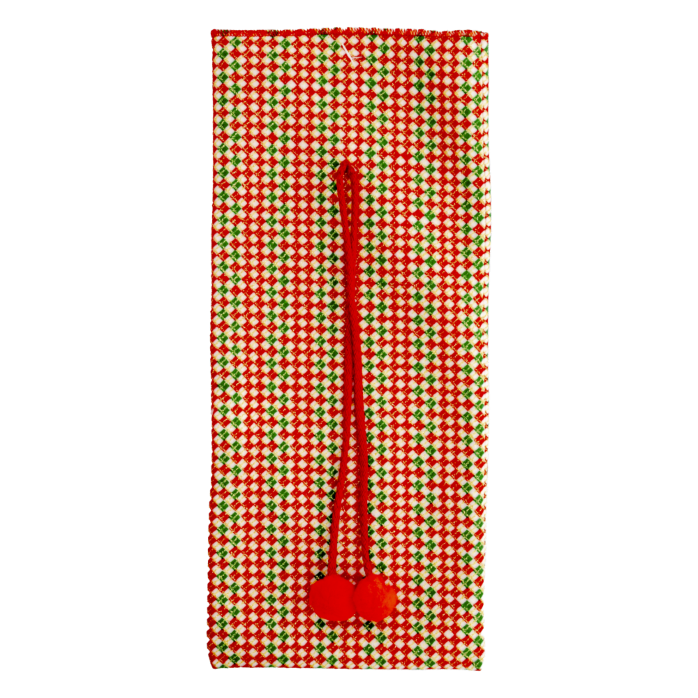 Su diseño clásico y materiales de calidad la hacen perfecta para envolver botellas de vino, licor o como detalle decorativo en tu mesa navideña. Ideal para regalar o complementar tus obsequios con un toque especial