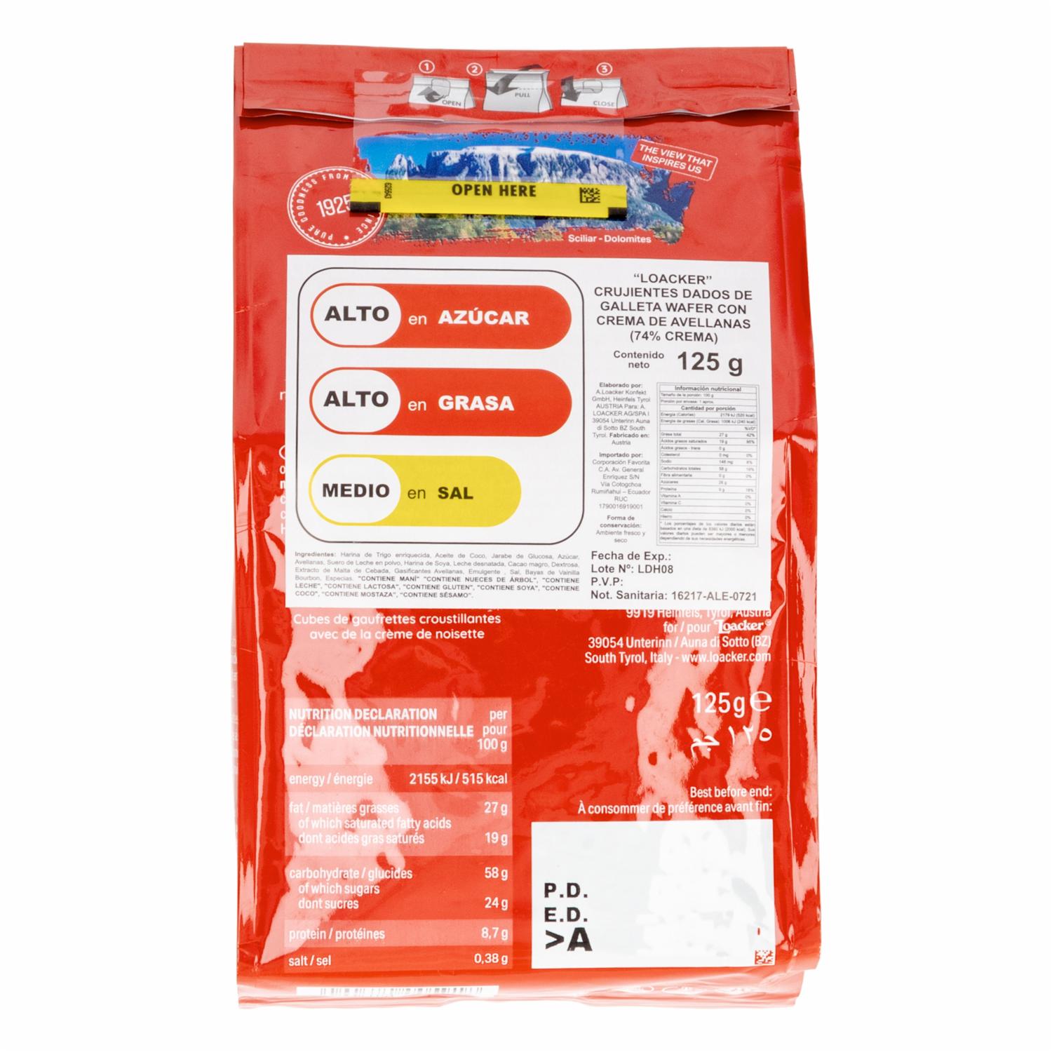 Galleta Dados Con Avellana LOACKER 125 G