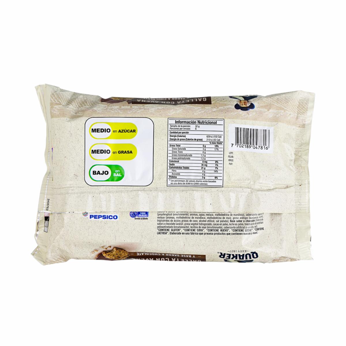 Galleta De Avena Y Chocolate QUAKER 192 G – QUAKER. Disponible en nuestros locales. Precio y stock pueden variar según la tienda.