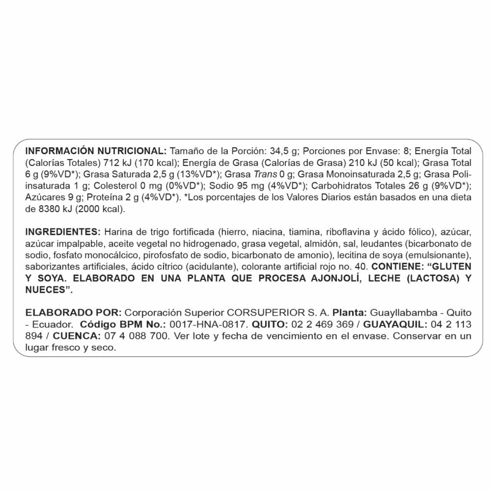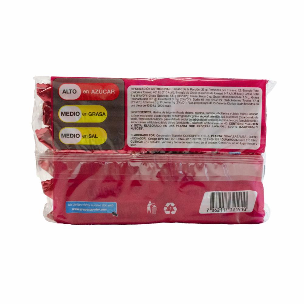 • Galletas tipo sánduche rellenas con deliciosa crema sabor a fresa