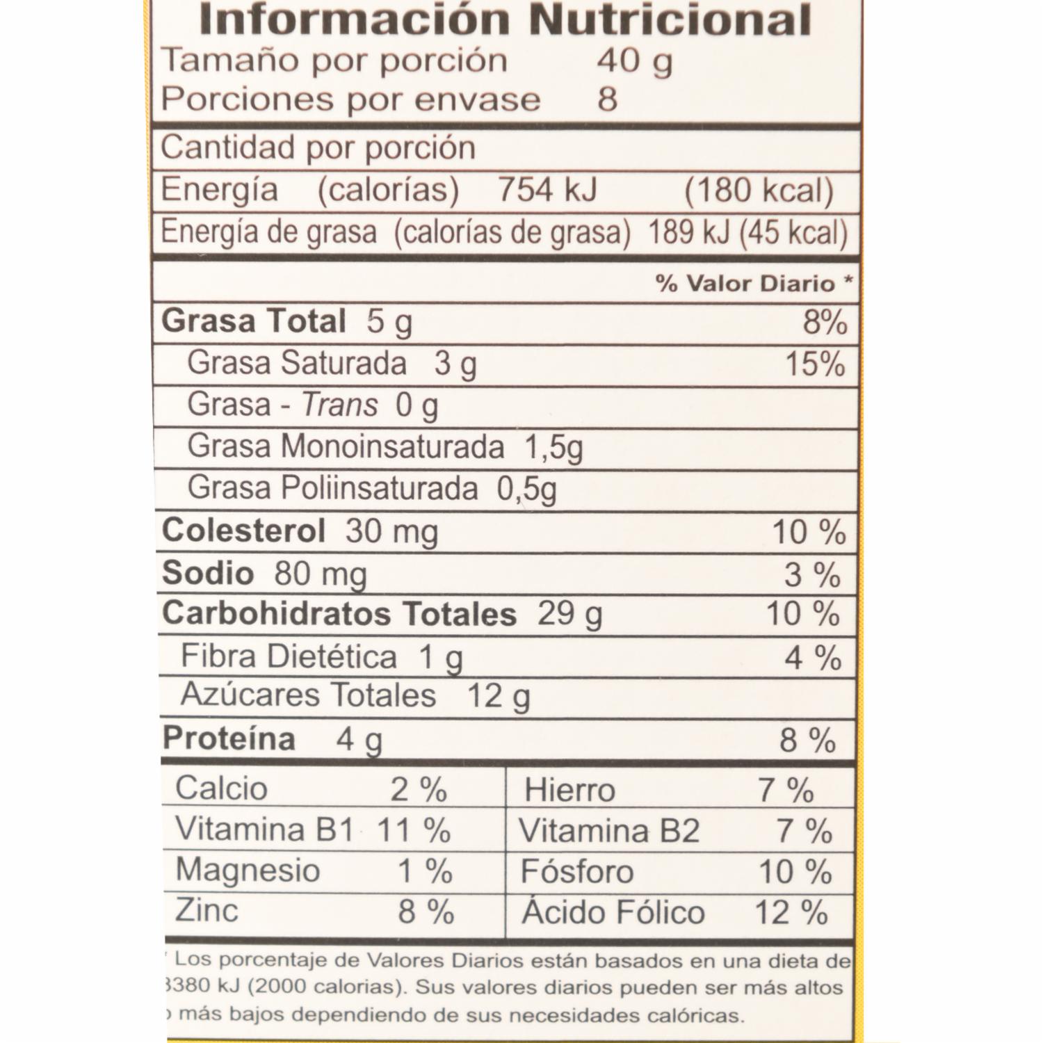 Harina de trigo orgánica, miel de abejas, germen de trigo, mantequilla, huevos, azúcar morena, panela granulada orgánica y esencia natural de vainilla