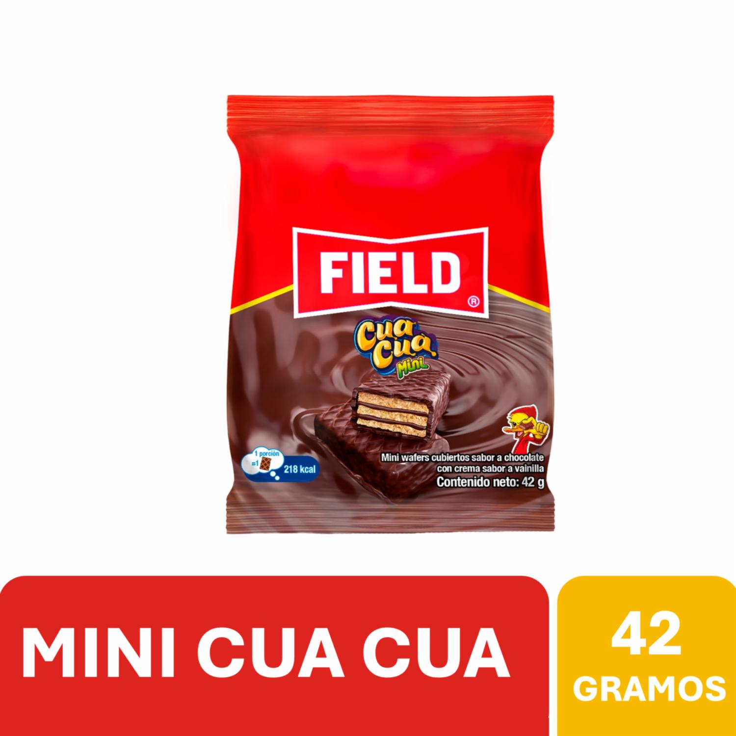 Wafer Field CuaCua Mini Wafe bañados en chocolate y rellenos con crema sabor a vainilla. Disfruta de una pausa irresistible, relájate, cierra los ojos, siente la combinación de texturas del delicioso Mini Cua Cua. Saboréalo de manera consciente. Desde hace 160 años que Field viene endulzando la vida de millones de peruanos con sus deliciosas galletas. Sigamos viviendo momentos que duren para siempre con Field
